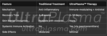 Traditional treatments involve corticosteroids and antihistamines, but these do not address the viral hypothesis nor support vascular normalization or immune modulation. UltraPlasma™ offers an advanced dermo-systemic intervention using multi-phase plasma fields.
